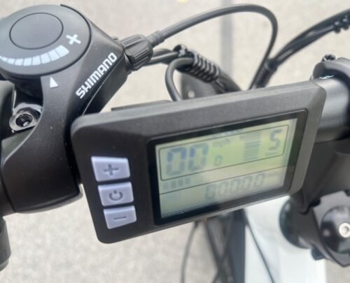 Afterward, I wanted to charge the battery but saw that it was almost fully charged, so it took me less than one hour to fully charge it. The LCD Display, in my opinion, functions like a bike computer, providing quite a lot of information. I can see the odometer, voltage data of the battery, the distance of a single trip, battery status, and assist level, which is the current power assist level. To increase the pedal assist level, I press the plus button, and to decrease it, I press the minus button. I can toggle between the odometer, trip distance, and voltage by short-pressing the power button. It’s from the LCD Display that I can also turn the headlight on and off and sound the horn, which is quite similar to a car horn. I can even adjust the brightness of the backlight and set the bike to turn off automatically after a certain period of inactivity, ranging from 0 minutes (meaning it stays on continuously) to 60 minutes. I can also reset the odometer.