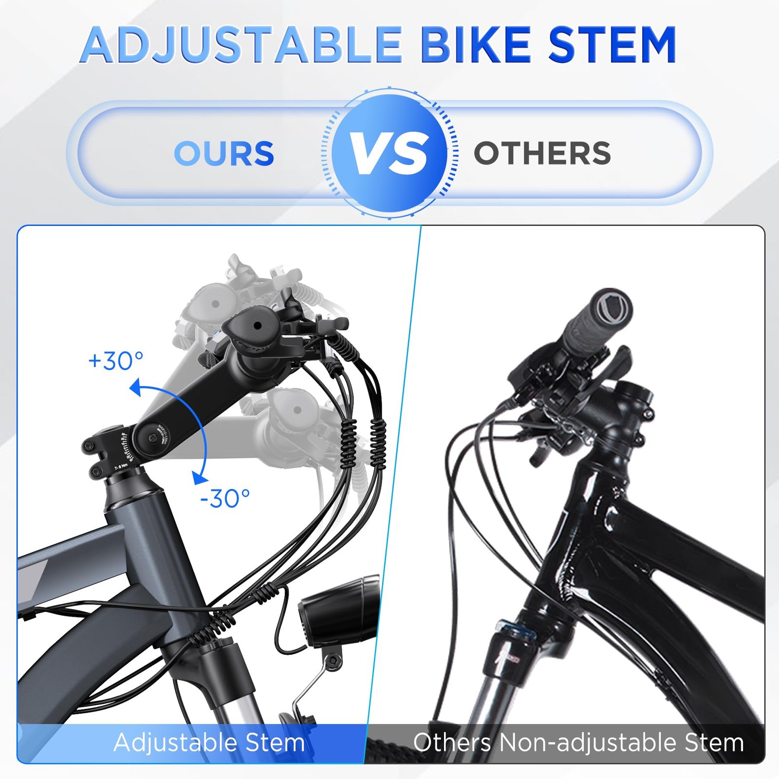 - Adjustable stem ±30 ° & saddle for riders
