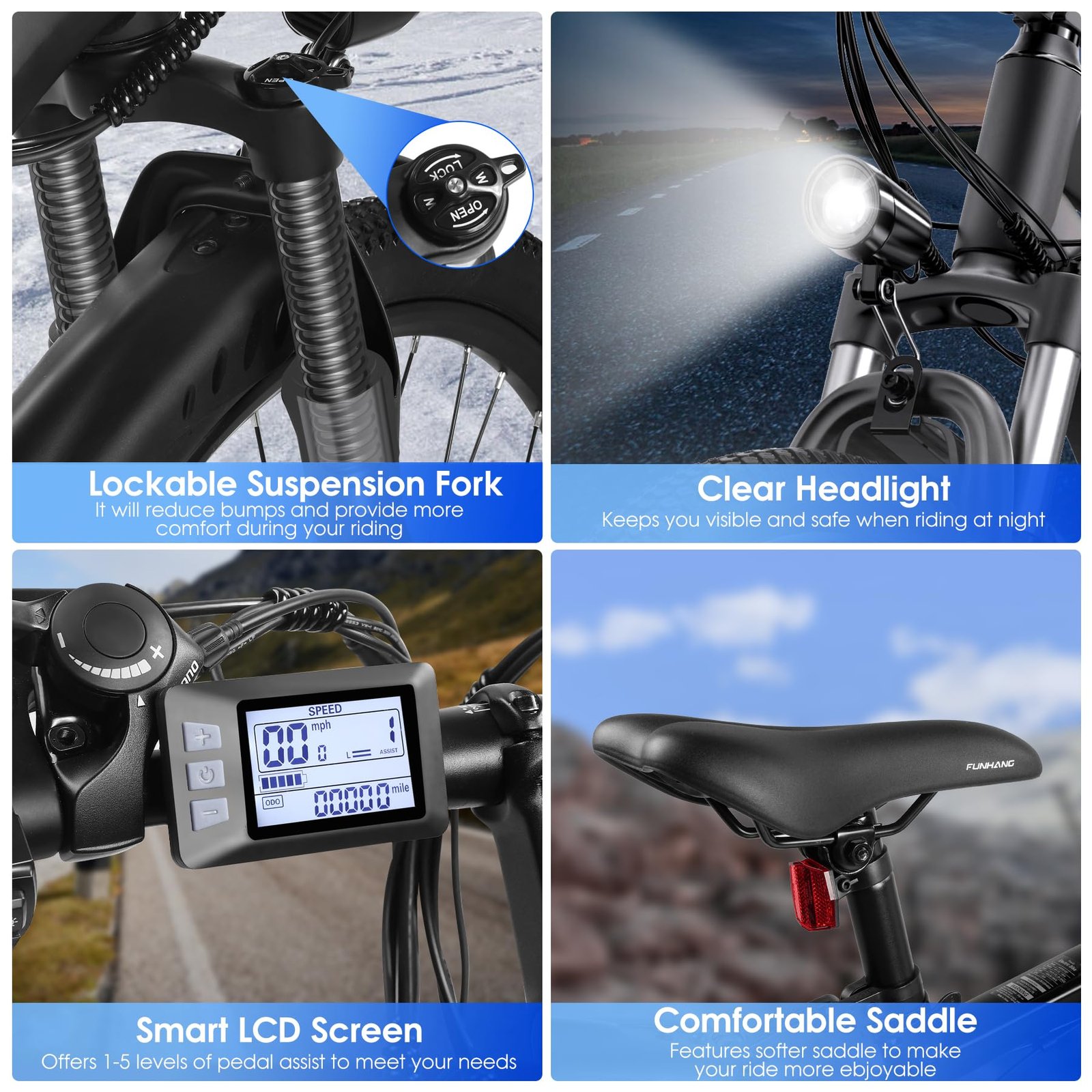 The ride is acceptable but can be teeth rattling on uneven terrain at higher speeds. I find that’s where you get what you pay for. Although totally acceptable beware bumps can be harsh especially at higher speeds. The front shock absorber helps but is not the best. I mostly ride in power assist 1 or 2 and push it to 4 or 5 uphill. Going uphill is what this bike does well. I never used throttle only for hills.