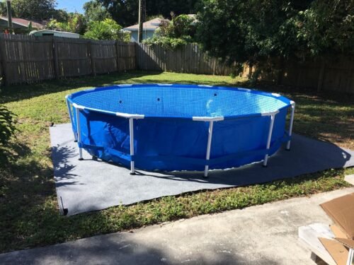 It took my some time to set this pool up as I did it by myself. I raked all of the rocks out of my way, but still had a few stuck underneath that I can feel as I swim around. Thankfully, this pool is durable enough for the rocks not to puncture a hole. I purchased a tarp to put underneath for protection, but I do wish this came with its own protection underneath. My pool is slightly lopsided because my backyard itself is not totally leveled, but it's flat enough. I am aware that this could cause issues down the road from too much pressure on one side, but I think it's totally fine as the pool is temporary for me until I move again.