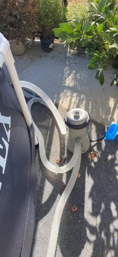 A note on the filter. This is a portable system. When you install or change the filter, air will get into the pump. The pump will not pump air. Turn the pump on and lift the hoses higher than the pump to allow the air to escape the pump chamber through the hose so the pump fills with water again. You may even need to reposition the pump to allow the air to escape through the hose.