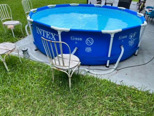 One caution on chlorine. A normal 3-inch chlorine tablet is designed to treat 10,000 gallons of water. This 10' x 30" pool holds a maximum of 1,500 gallons when filled to the brim. I estimate I have about 1,200 gallons in our pool at roughly 24” depth. It’s easy to over chlorinate the water, which will cause discomfort for swimmers and shorten equipment life.