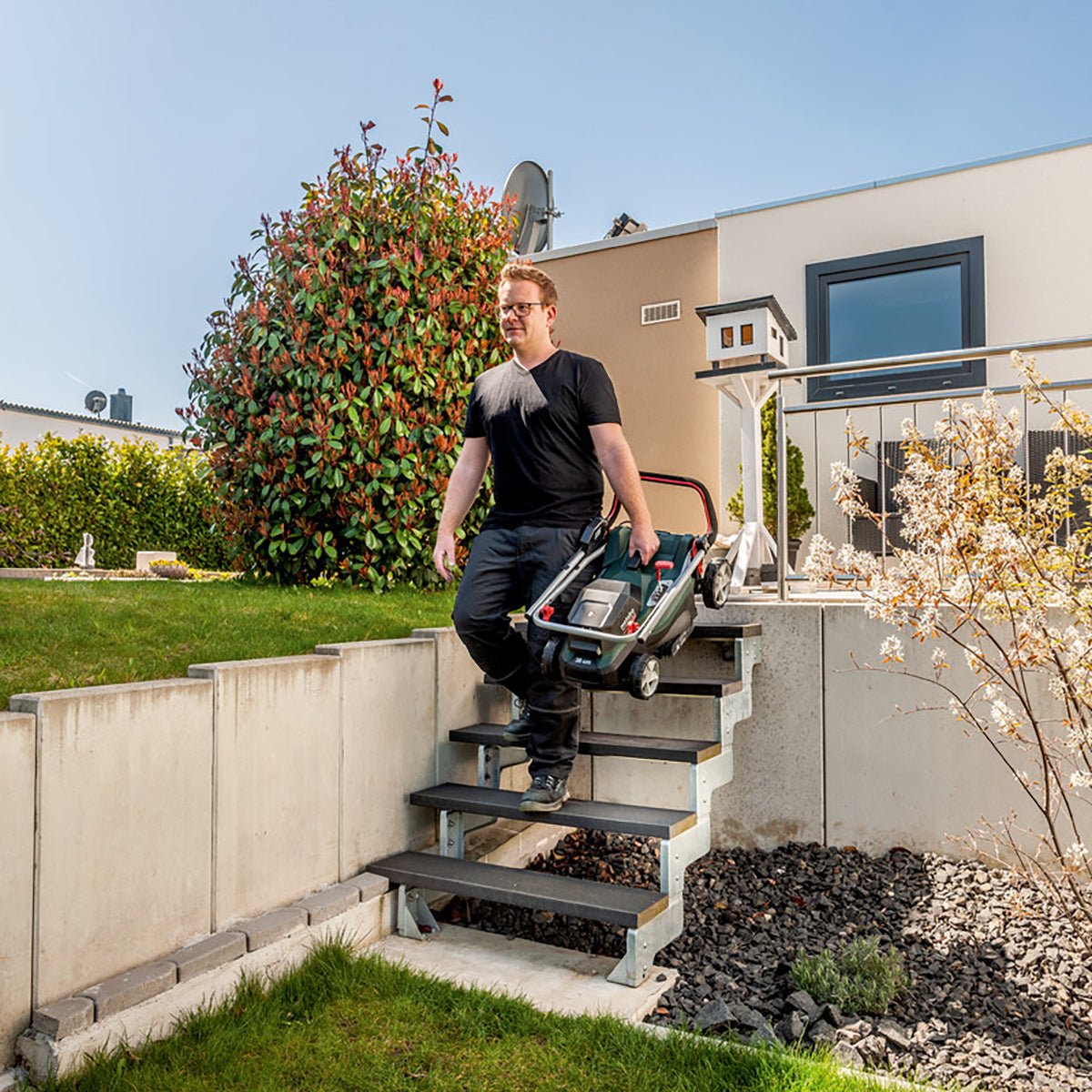 The Metabo RM 36-18 LTX BL 36 is a compact and mobile lawn mower, ideal for mowing and mulching areas up to 350 m². Its powerful brushless motor ensures high cutting performance and extended battery runtime. The adjustable cutting height (5 stages) and integrated lawn combs provide a clean and precise cut near edges. Designed for comfort, it features a height-adjustable push handle with a rubberized grip for ergonomic use. The lightweight plastic cover ensures easy maneuverability, while the folding handle and carry handles allow for convenient transport and space-saving storage. Battery-powered, it operates quietly and eco-friendly, making it suitable for noise-sensitive areas.