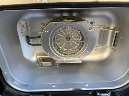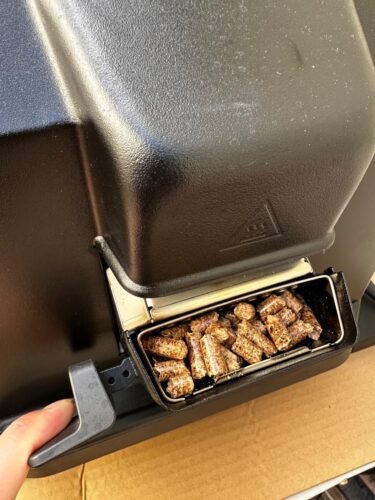 It’s easy to use, simply plug it in, fill the pellet hopper, choose the mode temperature and cook time, then press ignite. Wait for it to preheat and display “add food”, then start cooking.