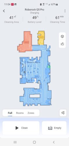 This is part of our basement which is generally dark with zero lights on; the iRobot S9 would normally give up as it requires some amount of light to perform its job; Roborock Q5 Pro+ will happily start and run in pitch black which affords us the flexibility to run in off hours when the family has gone to bed.