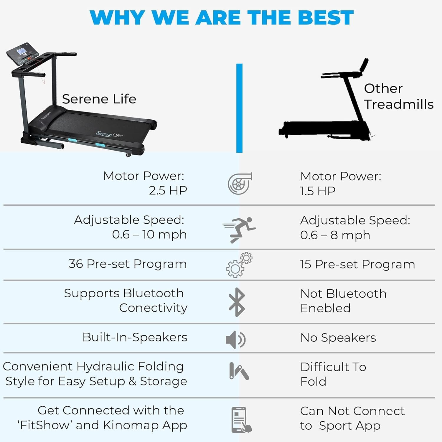 Overall, the SereneLife Foldable Treadmill offers excellent value for those seeking a compact, feature-packed treadmill that fits well in any home environment. Its customizable options, ease of storage, and connectivity features make it an appealing choice for anyone from beginners to seasoned fitness enthusiasts. If you're looking for a treadmill that delivers a solid cardio experience without taking up too much space, this model certainly fits the bill.