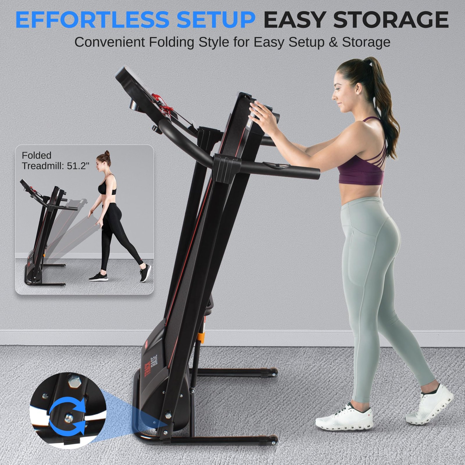 One of the standout features of this treadmill is its hydraulic folding system. After your workout, simply fold it up, and it stores away easily with minimal effort. With compact dimensions of just 21.65" L x 24.4" W x 46.4" H when folded, it’s a great choice for those who are limited on space but still want the benefits of a treadmill. Whether you’re living in a small apartment or just need to save room when not in use, this feature makes it a perfect solution.