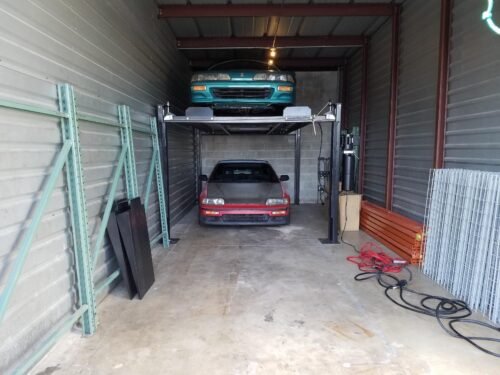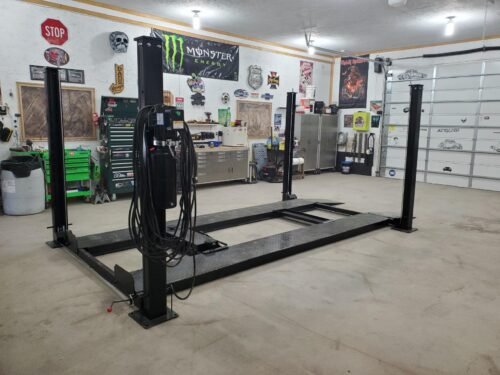 Featuring a drive-through width of 93″ (236 cm), this lift accommodates most vehicles. Built with a UL-listed power unit and steel oil tank, it ensures both safety and durability. The 4-post design allows vertical parking to double your space.